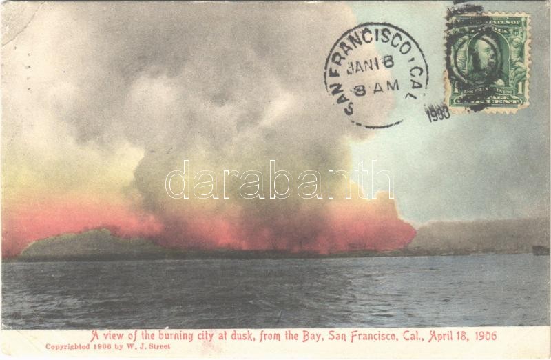1908 San Francisco (California), A view of the burning city at dusk, f... https://www.darabanth.com/de/390-Fernauktion/390.0/Ansichtskarten/Vereinigte-Staaten-von-Amerika~1500016/1908-San-Francisco-California-A-view-of-the-burning-city-at-dusk-from-the-Bay-April-18-1906-E~II2351860