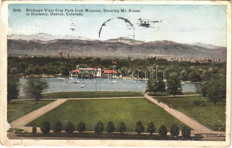 1928 Denver (Colorado), birdseye view city park from Museum, showing M... https://www.darabanth.com/de/390-Fernauktion/390.0/Ansichtskarten/Vereinigte-Staaten-von-Amerika~1500016/1928-Denver-Colorado-birdseye-view-city-park-from-Museum-showing-Mt-Evans-in-distance-wet-damg~II2349110