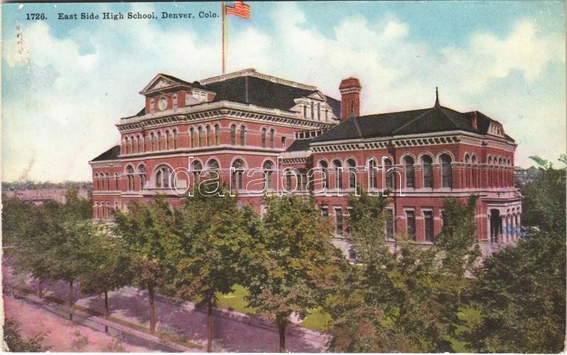 Denver (Colorado), East Side High School (wet damage) https://www.darabanth.com/de/390-Fernauktion/390.0/Ansichtskarten/Vereinigte-Staaten-von-Amerika~1500016/Denver-Colorado-East-Side-High-School-wet-damage~II2341883