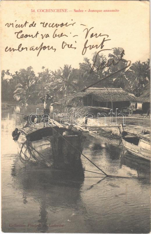 1911 Sa Dec, Sadec, Cochinchine; Joncque annamite / boats (EK) https://www.darabanth.com/de/390-Fernauktion/390.0/Ansichtskarten/Vietnam~1500114/1911-Sa-Dec-Sadec-Cochinchine-Joncque-annamite-boats-EK~II2352453