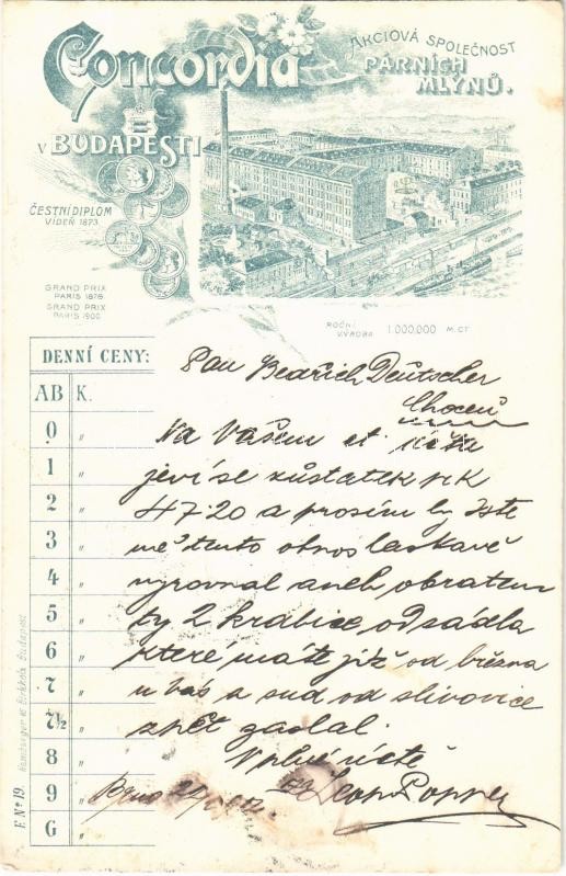 1902 Concordia Akciová Spolecnost, Parních Mlynu v Budapesti / A Conco... https://www.darabanth.com/de/390-Fernauktion/390.0/Ansichtskarten/Werbungen~1500083/1902-Concordia-Akciova-Spolecnost-Parnich-Mlynu-v-Budapesti-A-Concordia-Gozmalom-Reszvenyta~II2350031