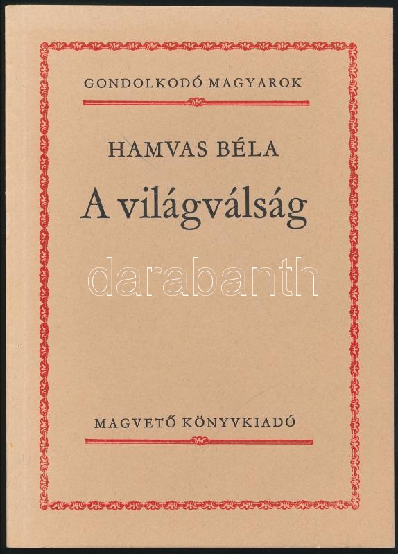 Hamvas Béla: Világválság. Az előszót és a jegyzeteket írta: Szigethy G... https://www.darabanth.com/de/390-Fernauktion/390.0/Bucher/Bucher-Andere-kuriositaten~1000019/Hamvas-Bela-Vilagvalsag-Az-eloszot-es-a-jegyzeteket-irta-Szigethy-Gabor-Gondolkodo-Mag~II2350989