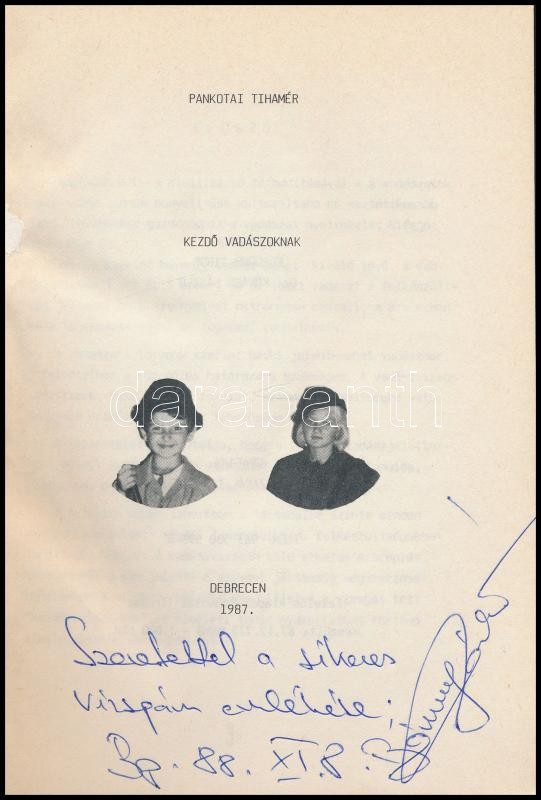 Pankotai Tihamér: Kezdő vadászoknak. Debrecen, 1987, MNYD. Kiadói papí... https://www.darabanth.com/de/390-Fernauktion/390.0/Bucher/Bucher-Jagd~1000008/Pankotai-Tihamer-Kezdo-vadaszoknak-Debrecen-1987-MNYD-Kiadoi-papirkotes-ajandekozas~II2352530