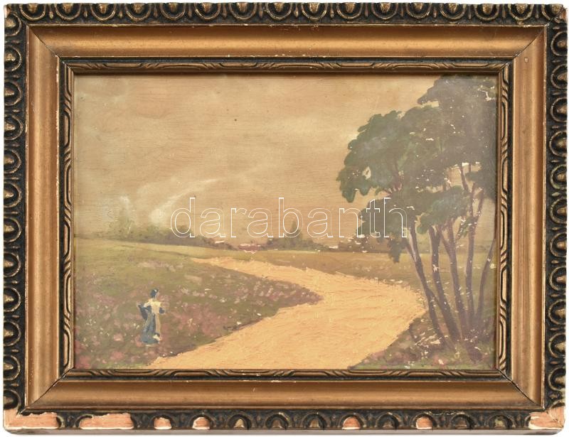 Jelzés nélkül: Arany középút. Olaj, karton. Üvegezett, sérült fa keret... https://www.darabanth.com/de/390-Fernauktion/390.0/Gemalde-und-Grafiken/Gemalde-und-Graphic-quot-signiertquot-quot-ohne-Signquot-~500002/Jelzes-nelkul-Arany-kozeput-Olaj-karton-Uvegezett-serult-fa-keretben-12x16-cm~II2320327