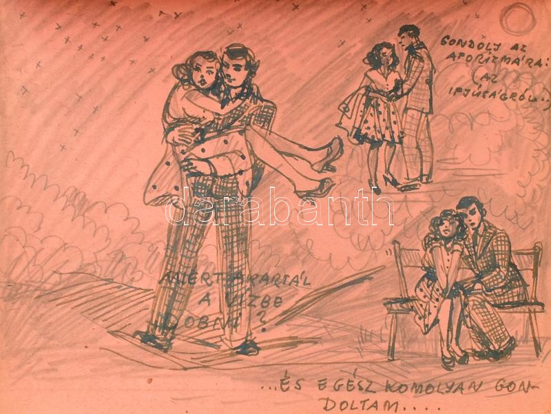Jelzés nélkül, feltehetően XX. sz. magyar művész alkotása: Tiroli tájakról, emberekről készített több mint 30 db rajz 1945-ből. Tus vagy ceruza, "múlt emlékei feliratozott okmánytömb lapjain, néhány külön lapon. 9,5x13 és 14x19,5 cm közötti méretekben. Néhány fotó is beragasztva.