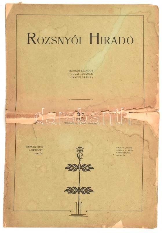 1903 A Rozsnyói Hiradó folyóirat negyedszázados fönnállására kiadott ü... https://www.darabanth.com/de/390-Fernauktion/390.0/Kunst-Dokumente-andere-Sammelgebiete/Drucksachen~500033/1903-A-Rozsnyoi-Hirado-folyoirat-negyedszazados-fonnallasara-kiadott-unnepi-szama-Hajtas~II2345057