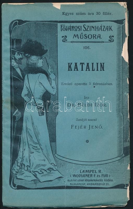 Dr. Béldi Izidor - Fejér Jenő: Katalin, operett 3 felvonásban, szövegk... https://www.darabanth.com/de/390-Fernauktion/390.0/Kunst-Dokumente-andere-Sammelgebiete/Musik-Noten-Instrumenten~500032/Dr-Beldi-Izidor-Fejer-Jeno-Katalin-operett-3-felvonasban-szovegkonyv-felvagatlan-peld~II2351184