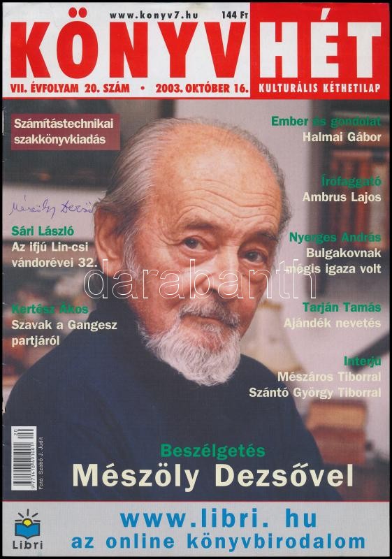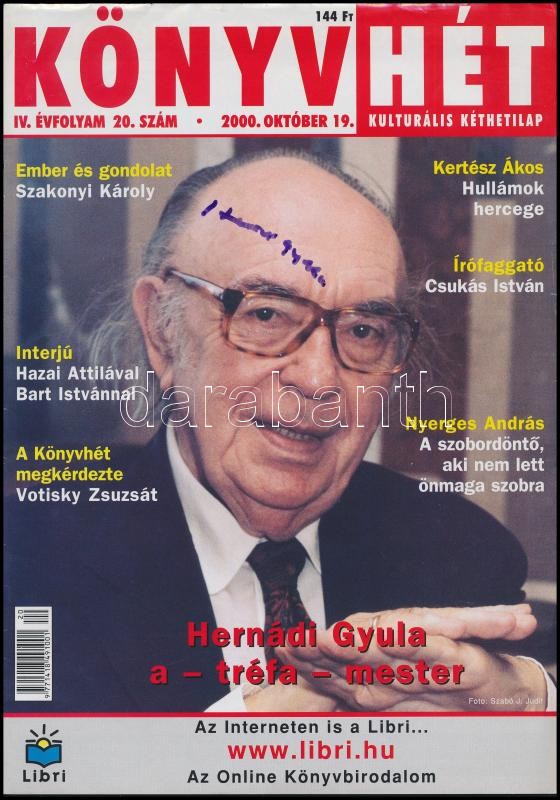 Mészöly Dezső (1918-2011) Kossuth-díjas magyar író, költő, műfordító és Hernádi Gyula (1926-2005) József Attila-díjas és Kossuth-díjas magyar író, forgatókönyvíró aláírásai a Könyvhét c. folyóirat címlapjain.