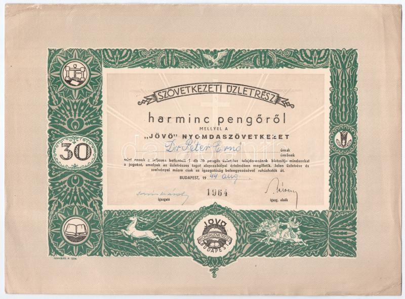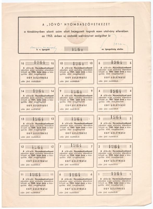 Budapest 1944. " 'Jövő' Nyomdaszövetkezet" szövetk... https://www.darabanth.com/de/390-Fernauktion/390.0/Numismatik/Aktien-und-Tickets~2000005/Budapest-1944-Jovo-Nyomdaszovetkezet-szovetkezeti-uzletreszjegye-30P-rol-szelvenyekkel~II2319808