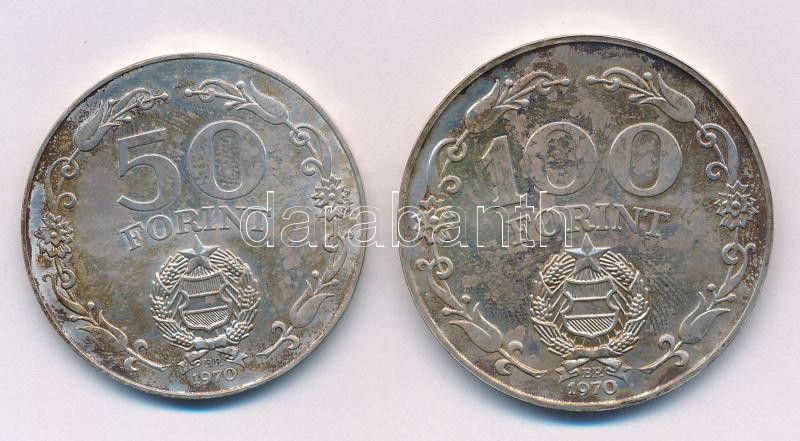 1970. 50Ft Ag + 100Ft Ag "Felszabadulás" T:BU patina Adamo E... https://www.darabanth.com/de/390-Fernauktion/390.0/Numismatik/Ungarische-Munzen-und-Munzen-mit-ungarischem-Munzzeichen~2000008/1970-50Ft-Ag-plus-100Ft-Ag-Felszabadulas-TBU-patina-Adamo-EM36-EM37~II2345843