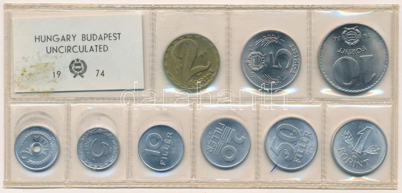 1974. 2f-10Ft (9xklf) érmés forgalmi sor fóliatokban T:1 tokon ragaszt... https://www.darabanth.com/de/390-Fernauktion/390.0/Numismatik/Ungarische-Munzen-und-Munzen-mit-ungarischem-Munzzeichen~2000008/1974-2f-10Ft-9xklf-ermes-forgalmi-sor-foliatokban-T1-tokon-ragasztonyom~II2345712
