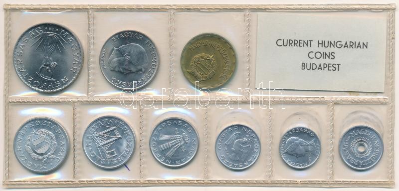 Beschreibung: 1974. 2f-10Ft (9xklf) érmés forgalmi sor fóliatokban T:1 tokon ragasztónyom