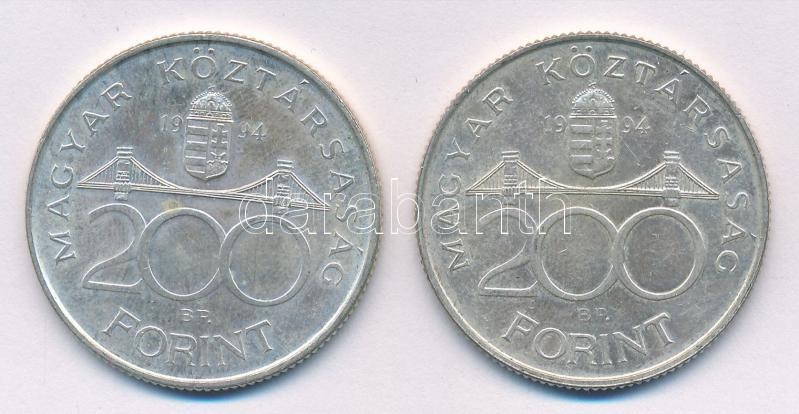 1994. 200Ft Ag "Deák" (2x) T:1- Adamo F13.1 https://www.darabanth.com/de/390-Fernauktion/390.0/Numismatik/Ungarische-Munzen-und-Munzen-mit-ungarischem-Munzzeichen~2000008/1994-200Ft-Ag-Deak-2x-T1-Adamo-F131~II2346202