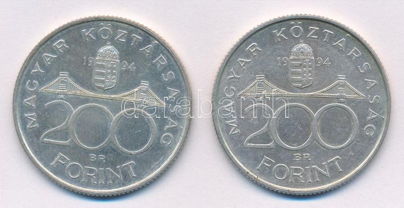 Beschreibung: 1994. 200Ft Ag "Deák" (2x) T:1- Adamo F13.1