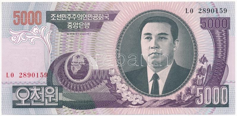 North Korea 2006. 5000 Won C:UNC https://www.darabanth.com/de/390-Fernauktion/390.0/Numismatik/Weltweit-Banknoten~2000013/Eszak-Korea-2006-5000W-TI--North-Korea-2006-5000-Won-CUNC~II2352738