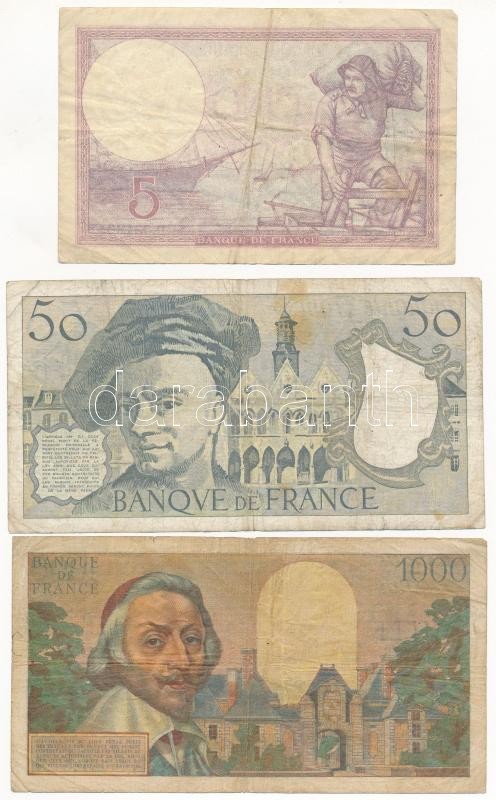 Beschreibung: Franciaország 1933. 5Fr + 1955. 1000Fr + 1988. 50Fr T:III France 1933. 5 Francs + 1955. 1000 Francs + 1988. 50 Francs C:F