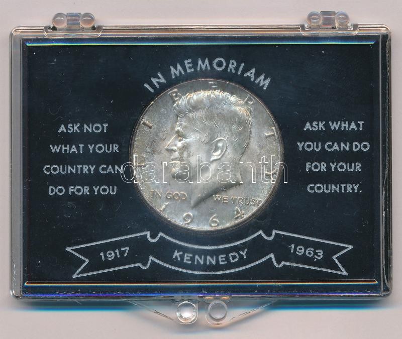 Amerikai Egyesült Államok 1964. 1/2$ Ag "Kennedy" kissé sérült dísztokban T:1-,2 USA 1964. 1/2 Dollar Ag "Kennedy" in slightly damaged decorative case C:AU,XF Krause KM#202