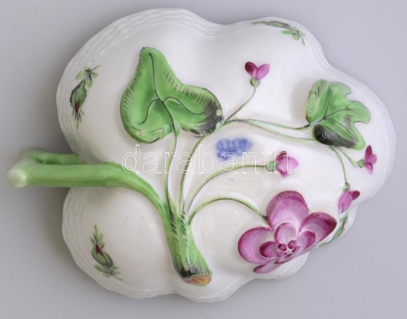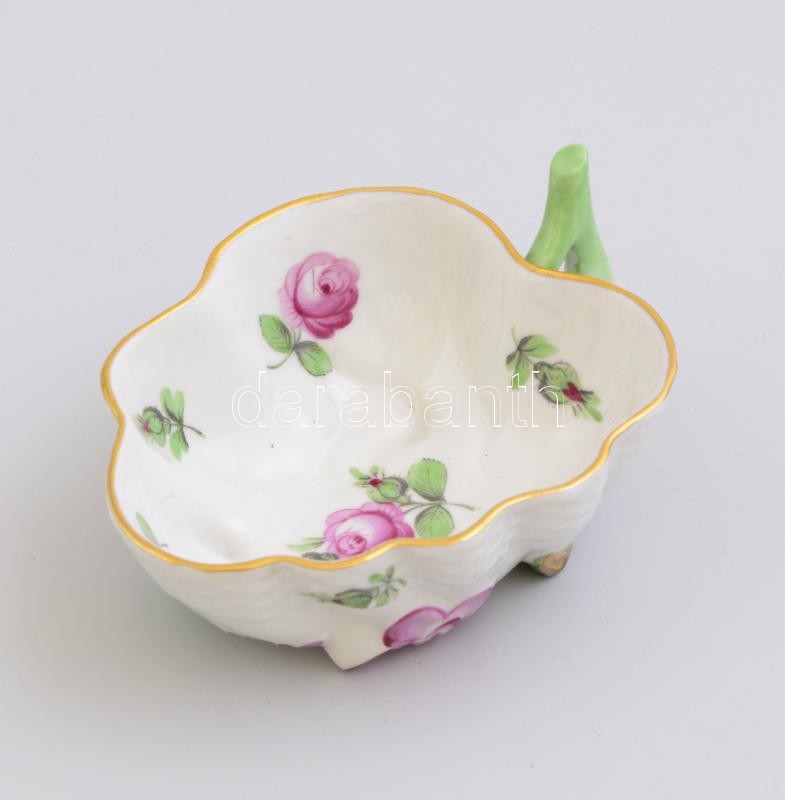 Beschreibung: Herendi rózsa mintás, levél formájú porcelán tálka Kézzel festett, jelzett, hibátlan. 10,5x8 cm
