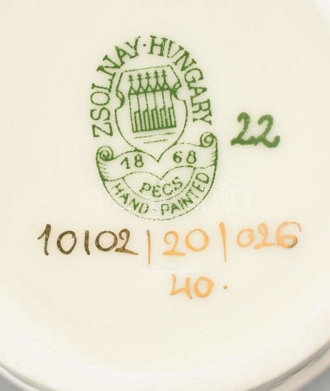 Zsolnay pillangómintás porcelán bonbonnier, kézzel festett, jelzett, h... https://www.darabanth.com/de/390-Fernauktion/390.0/Porzellan-Keramik-Glass/Porzellan~500006/Zsolnay-pillangomintas-porcelan-bonbonnier-kezzel-festett-jelzett-hibatlan-d-4-5-cm~II2348859