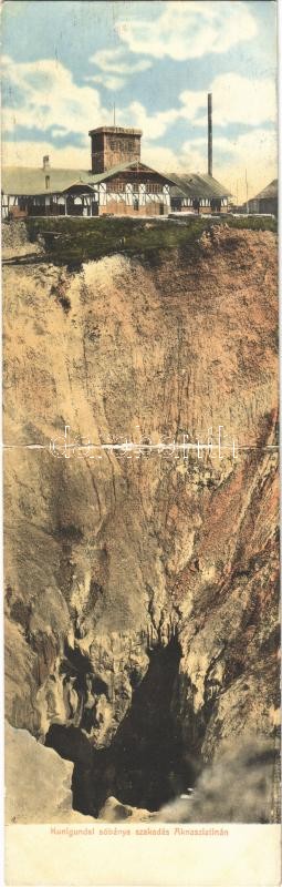Beschreibung: Aknaszlatina, Slatinské Doly, Solotvyno (Máramaros); Kunigunda sóbánya szakadása. Benkő Miklós kinyitható panorámalapja / mine collapse. Folding panoramacard