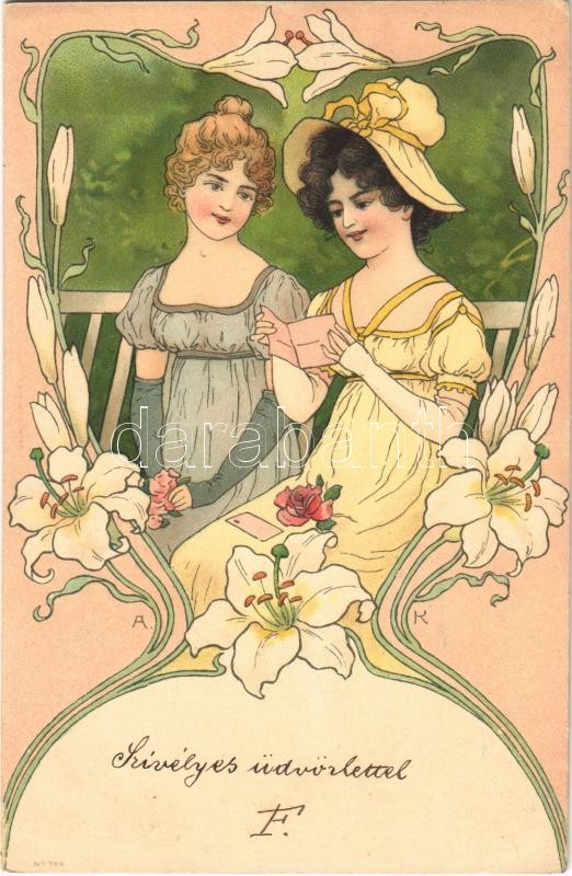 Lady art postcard. No. 744. Art Nouveau, floral, litho https://www.darabanth.com/de/391-Fernauktion/391.0/Ansichtskarten/Kunstlerkarten~1000078/Lady-art-postcard-No-744-Art-Nouveau-floral-litho~II2362925