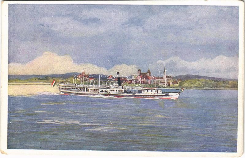 Beschreibung: "Szentendre" az MFTR Magyar (Királyi) Folyam- és Tengerhajózási RT oldalkerekes személyszállító gőzöse Szentendre városnál. MFTR Művészlevelezőlap 6314-18. / Hungarian sidewheeler passenger steamship (kopott sarkak / worn corners)