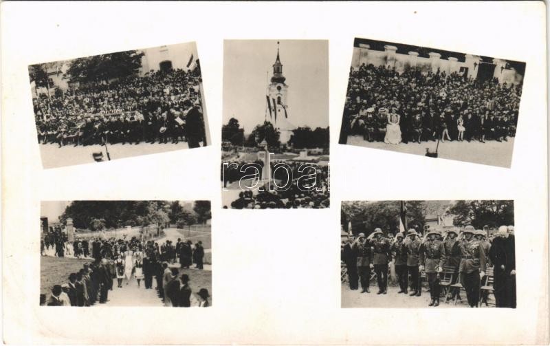 1940 Margitta, Marghita; országzászló avatási ünnepség a bevonuláskor. Hangya Szövetkezet kiadása. Sass Béla felvétele / Hungarian flag inauguration at the entry of the Hungarian troops