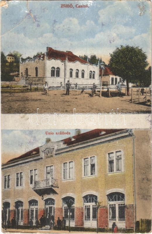 Beschreibung: Zsibó, Jibou; Kaszinó, Unió szálloda. Hoffmann Jenő kiadása / casino, hotel (r)