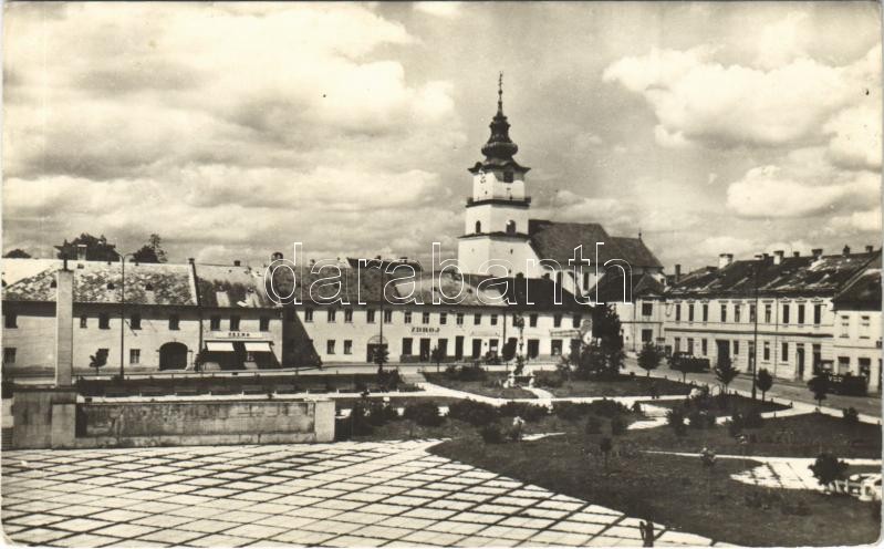 Privigye, Prievidza; Stálinovo nám. / Sztálin tér, templom, üzletek / ... https://www.darabanth.com/de/391-Fernauktion/391.0/Ansichtskarten/Slowakei~1000009/Privigye-Prievidza-Stalinovo-nam-Sztalin-ter-templom-uzletek-square-church-shops-EK~II2366315
