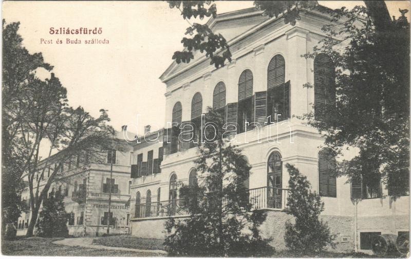 Beschreibung: Szliács, Sliac; Pest és Buda szálloda, Fürdőigazgatóság / hotels, spa directorate (EK)