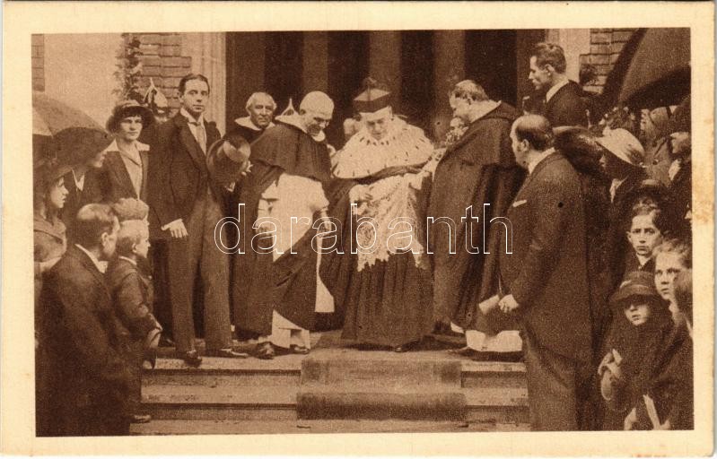 1216-1916 Budapest XIV. A bíboros Hercegprímás, Dr. Csernoch János távozása a Rózsafüzér királynéja templom megáldása után október 3-án. Herbst műnyomása