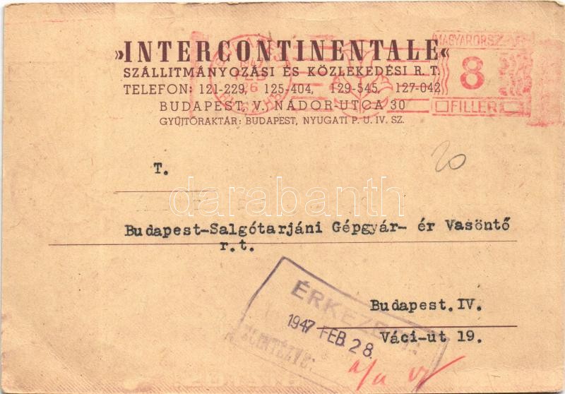 1947 Intercontinentale szállítmányozási és közlekedési R.T. reklámlapj... https://www.darabanth.com/de/391-Fernauktion/391.0/Ansichtskarten/Werbungen~1000082/1947-Intercontinentale-szallitmanyozasi-es-kozlekedesi-RT-reklamlapja-Hungarian-freight-~II2360643