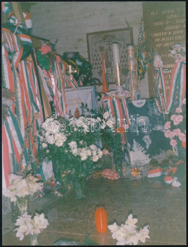 Beschreibung: cca 1990 Mindszenty József bíboros mariazell-i sírjáról készült fotó, hátulján feliratozott, 11,5x9 cm