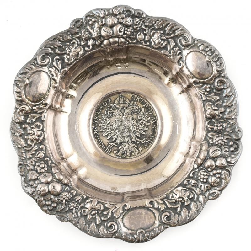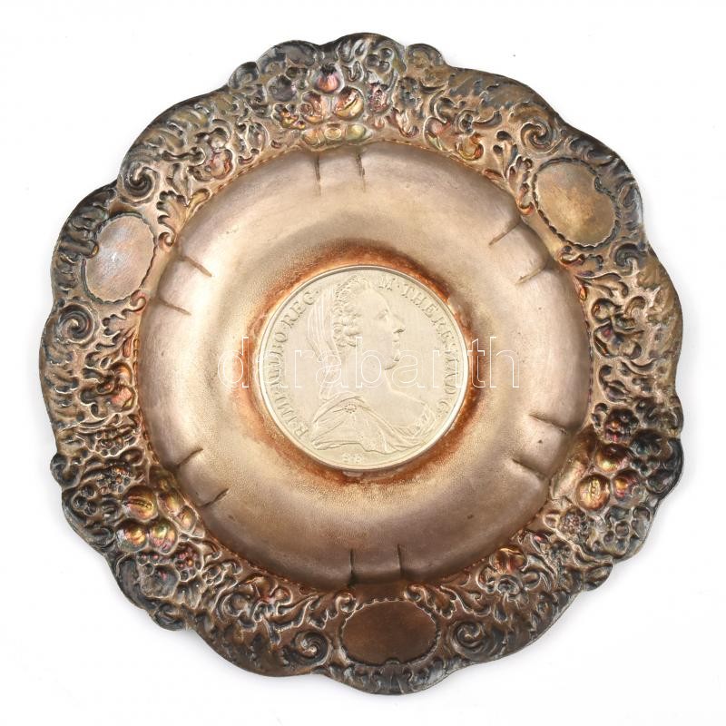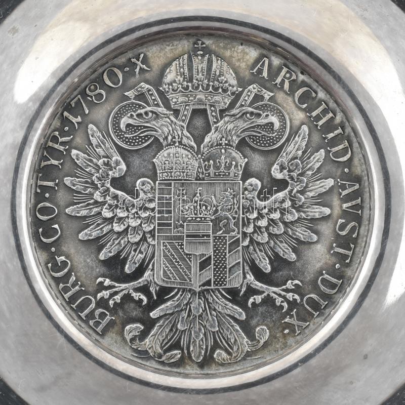Beschreibung: Fischer & Co. ékszerész, Bécs Mária Terézia ezüst tallér utánveret, fém tállal. Eredeti dobozában. d: 14 cm
