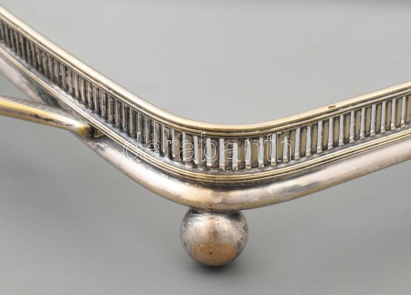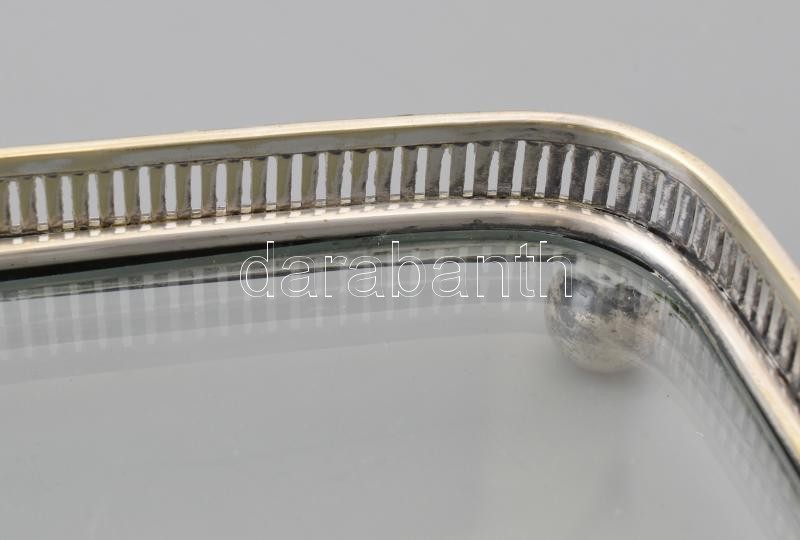 Beschreibung: Art deco lábas tortatálca üveglappal, Jelzett alpakka. Üveglapon kis lepattanás 33x24 cm