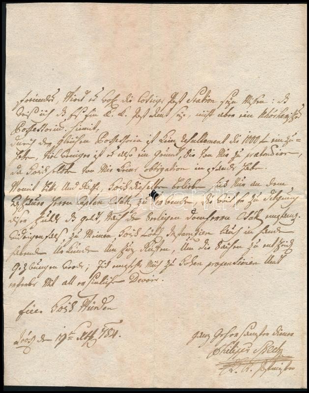 1784 Német nyelvű kézzel írt levél https://www.darabanth.com/de/391-Fernauktion/391.0/Kunst-Dokumente-andere-Sammelgebiete/Dokument~500018/1784-Nemet-nyelvu-kezzel-irt-level~II2363713