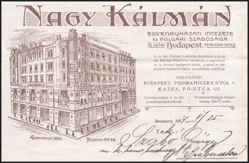1914 Bp. Ferenciek tere, Nagy Kálmán Egyenruházati Intézete és Polgári... https://www.darabanth.com/de/391-Fernauktion/391.0/Kunst-Dokumente-andere-Sammelgebiete/Dokument~500018/1914-Bp-Ferenciek-tere-Nagy-Kalman-Egyenruhazati-Intezete-es-Polgari-Szabosaga-fejleces-s~II2357899