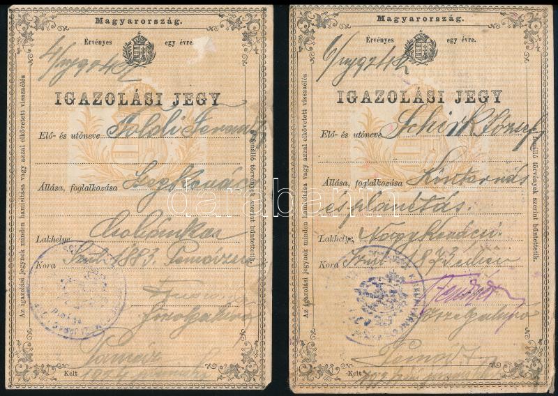 1914 Szegkovács és kintornás igazolási jegye https://www.darabanth.com/de/391-Fernauktion/391.0/Kunst-Dokumente-andere-Sammelgebiete/Dokument~500018/1914-Szegkovacs-es-kintornas-igazolasi-jegye~II2363995