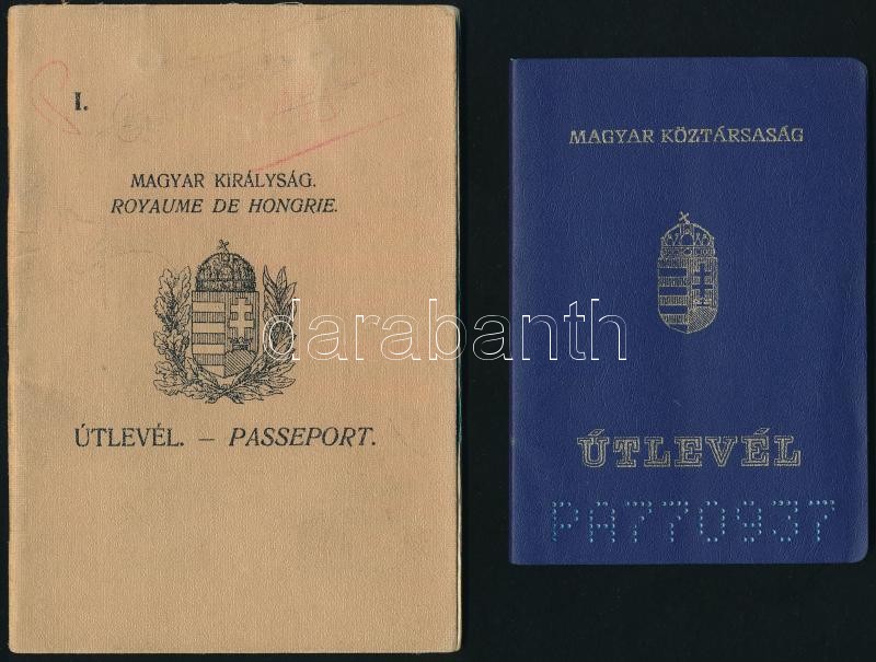 1933-1933 2 db útlevél (Magyar Királyság és Magyar Köztársaság által k... https://www.darabanth.com/de/391-Fernauktion/391.0/Kunst-Dokumente-andere-Sammelgebiete/Dokument~500018/1933-1933-2-db-utlevel-Magyar-Kiralysag-es-Magyar-Koztarsasag-altal-kibocsatott-nevek-m~II2359732