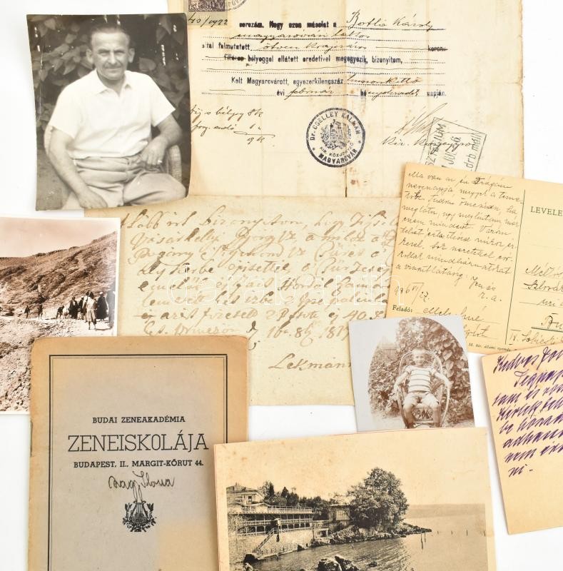 Beschreibung: Doboznyi vegyes régi okmány tétel, iratok, igazolványok, fotók, stb.