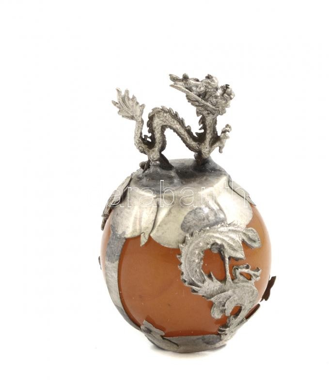 Borostyán színű gömb fém foglalatban, tetején sárkánnyal, m: 5 cm https://www.darabanth.com/de/391-Fernauktion/391.0/Kunst-Dokumente-andere-Sammelgebiete/Flohmarkt~500012/Borostyan-szinu-gomb-fem-foglalatban-tetejen-sarkannyal-m-5-cm~II2354707