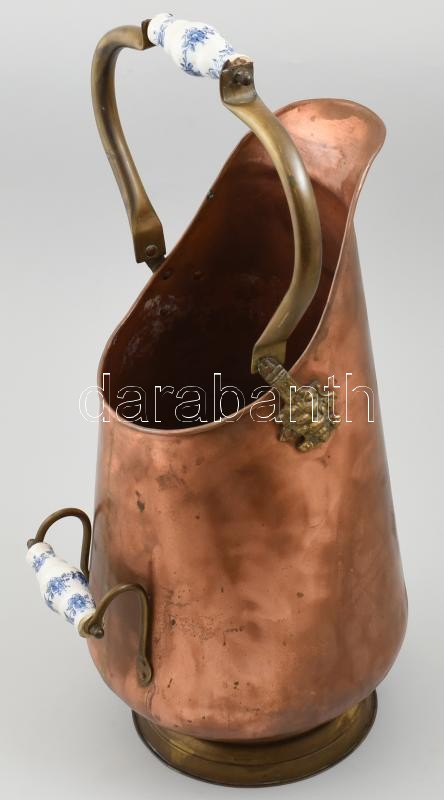 Réz szénhordó edény, virágmintás fajansz fogantyúval, m: 55 cm https://www.darabanth.com/de/391-Fernauktion/391.0/Kunst-Dokumente-andere-Sammelgebiete/Flohmarkt~500012/Rez-szenhordo-edeny-viragmintas-fajansz-fogantyuval-m-55-cm~II2361302