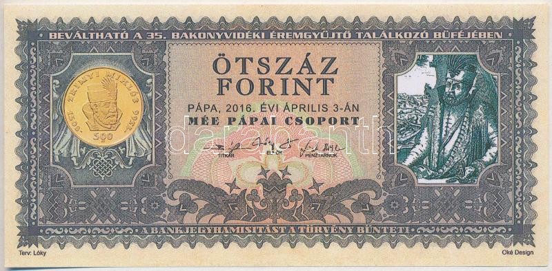 Pápa 2016. "MÉE Pápai csoport / 35. Bakonyvidéki Éremgyűjtő Találkozó"... https://www.darabanth.com/de/391-Fernauktion/391.0/Numismatik/Notgeld-aus-Papier-und-Metall~2000023/Papa-2016-MEE-Papai-csoport-35-Bakonyvideki-Eremgyujto-Talalkozo-500Ft-alkalmi-penz-~II2362282