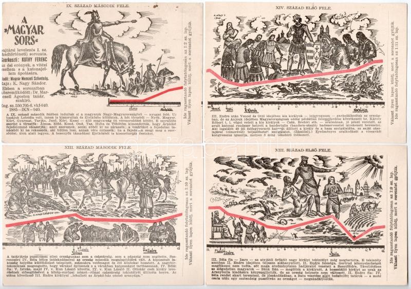 A Magyar Sors - bajtársi levelezés I. sz. (hadtörténeti) 22 darabos képeslapsorozata. Szerk. Kuthy Ferenc. K. Nagy Sándor rajzaival- kiadja a Magyar Nemzeti Szövetség / 22 pre-1945 Hungarian military history art postcards from a series
