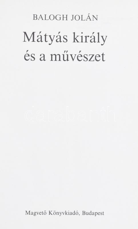 Balogh Jolán: Mátyás király és a művészet. Bp., 1985., Magvető. Kiadói... https://www.darabanth.com/de/392-Fernauktion/392.0/Bucher/Bucher-Architektur-Kunst~1000006/Balogh-Jolan-Matyas-kiraly-es-a-muveszet-Bp-1985-Magveto-Kiadoi-egeszvaszon-kote~II2376313