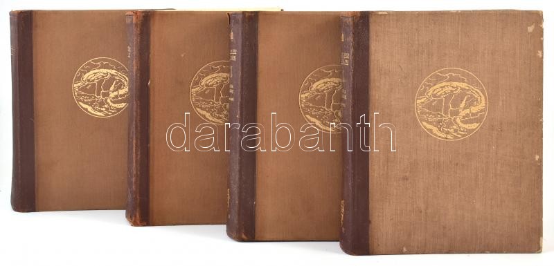 Bartucz Lajos et al.: Magyar föld, magyar faj. 1-4. köt. Bp., [1938-1939], Királyi Magyar Egyetemi Nyomda. . Kiadói félbőr kötésben, kopott borítókkal, az I. kötet kötéstábláin kopottak, a II. kötet gerincén kis sérülés és az elülső kötéstábla foltos.