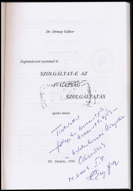 Dr. Ormay Gábor: Szolgáltat-e az I-gazság-szolgáltatás (görbe tükör). I-II. kötet. Miskolc, 1999, magánkiadvány. Papírkötésben, jó állapotban. A szerző által dedikált példány.