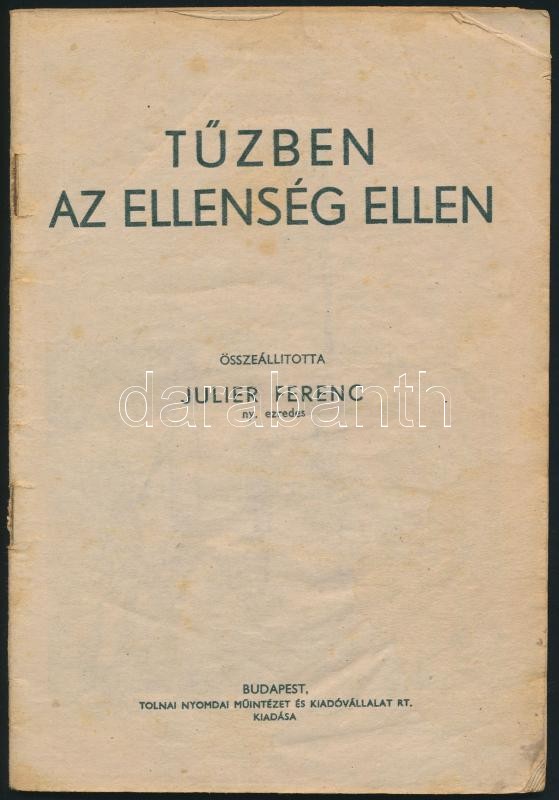 Julier Ferenc: Tűzben az ellenség ellen. Összeáll.: - - ny. ezredes. B... https://www.darabanth.com/de/392-Fernauktion/392.0/Bucher/Bucher-Militaria~1000005/Julier-Ferenc-Tuzben-az-ellenseg-ellen-Osszeall--ny-ezredes-Bp-1940-Tolnai-62-p-G~II2313490