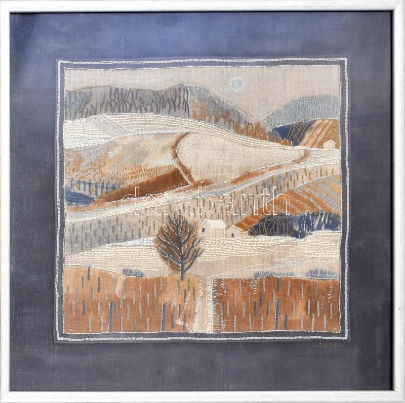 Lieber Éva (1932-2005): Táj. Vászonkép, gobelin. Jelzett, üvegezett ke... https://www.darabanth.com/de/392-Fernauktion/392.0/Gemalde-und-Grafiken/Gemalde-und-Grafiken~500001/Lieber-Eva-1932-2005-Taj-Vaszonkep-gobelin-Jelzett-uvegezett-keretben-48x48-cm~II2376393