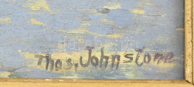 Beschreibung: T. Johnstone jelzéssel: Vitorlások. Olaj, vásznazott lemez, üvegezett fa keretben. 30x40 cm